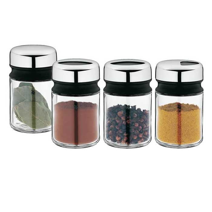 Набор из 4 контейнеров для специй WMF Depot (0661586040) идеально подходят для различных видов специй, поскольку каждый из четырех контейнеров имеет различные типы отверстий, которые позволяют помещать соответствующие специи.