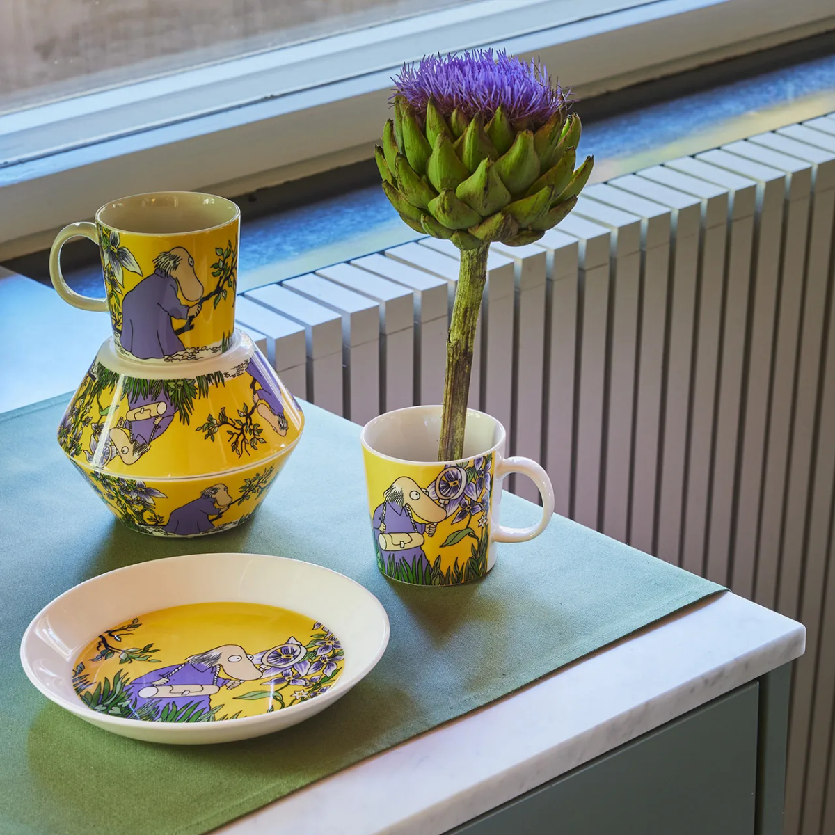Миска Arabia Moomin Hemulen 15 cm (1066915) в историях о Муми-троллях есть не один Хемуль, а много. Все они принадлежат к виду хемуль — группе высоких, длинномордых существ, обычно увлеченных каким-то определенным делом или хобби. Хемуль, которого мы видим в желтой чаше Хемуль из коллекции Moomin Classics, — натуралист и страстный коллекционер растений. Для него нет такого растения, которое не пробудило бы в нем чувство коллекционера. В предыстории чаши Хемуль отправился на остров Хаттифаттенера и снова нашел удивительно редкие предметы коллекционирования. На иллюстрации на другой стороне чаши Хемуль держит сухую ветку, которую он будет использовать, чтобы развести костер, чтобы высушить свое платье, промокшее под дождем.
