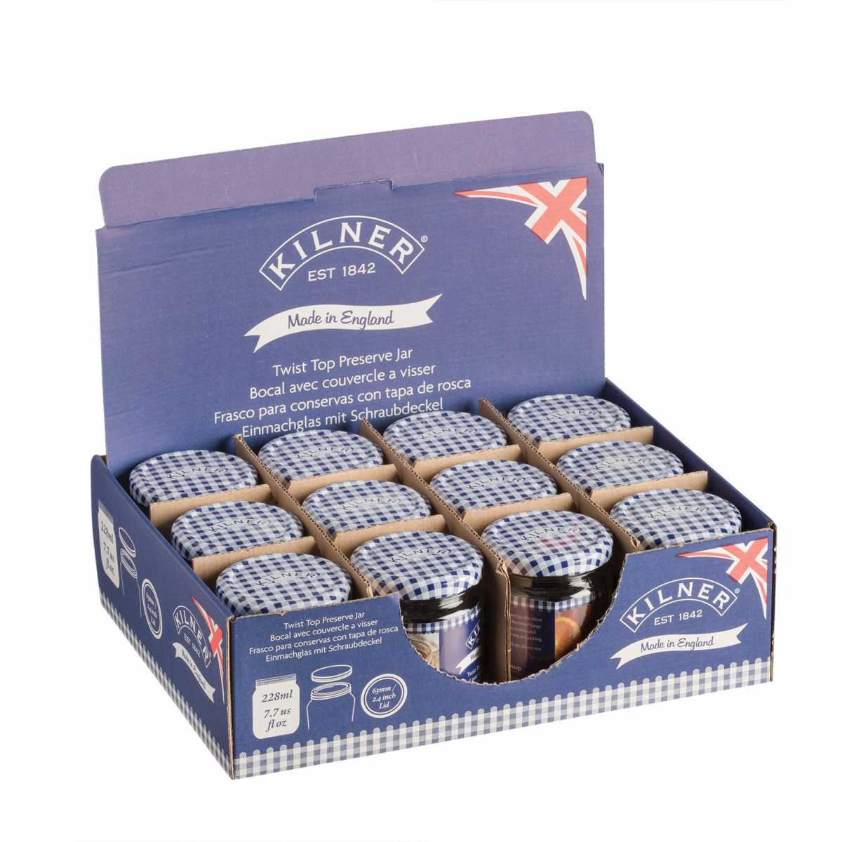 Банка Kilner Twist Top 0,26 L (0025.378) округлые формы и небольшой размер делают эту банку идеальной для варенья, джема, муссов и пюре для детей. Коллекция банок и бутылок Kilner Twist Top имеет завинчивающуюся крышку в бело-синюю клетку и большой логотип Kilner.