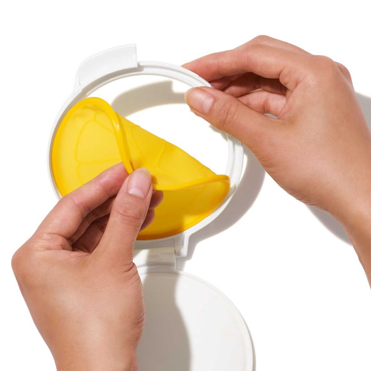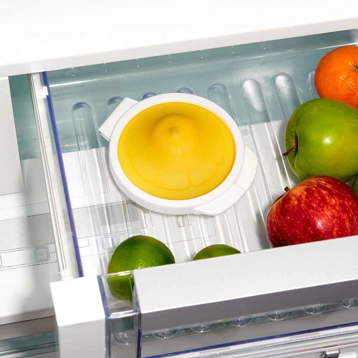 Емкость для хранения OXO лимона (11249800MLNYK) самый простой способ хранить остатки лимона в холодильнике. Благодаря гибкой мембране, натянутой на пластиковую основу, оболочка подходит для малых и средних половинок лимона и лайма. Плотное закрытие предотвращает попадание воздуха внутрь корпуса, поэтому продукты, хранящиеся в холодильнике, не впитывают запахи. Отсутствие доступа воздуха также влияет на более длительную свежесть овощей, замедляя процесс размножения бактерий и замедляя образование плесени. Интенсивный желтый цвет оболочки делает ее хорошо видимой в холодильнике, а сам цвет относится к цвету лимона. Сборка корпуса интуитивно проста: просто вставьте выпуклый силиконовый край в пластиковую основу. На внешней стороне контейнера должен быть виден выпуклый узор.