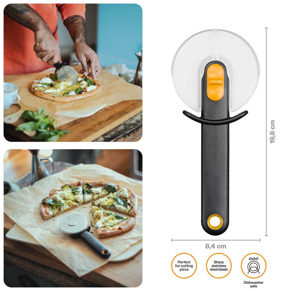 Ніж для піци Fiskars Functional Form™ (1079963) спеціально розроблений для швидкого, точного та безпечного нарізання піци, пирогів та різних видів тіста. Високоякісне, заточене лезо з нержавіючої сталі забезпечує чисті зрізи без розривів начинки та псування тіста, а зручна рукоятка забезпечує точний контроль. Ергономічність, практичність та довговічність, типові для лінійки продуктів Functional Form, також присутні в цьому інструменті, що робить його ідеальним вибором для щоденного використання на домашній кухні.