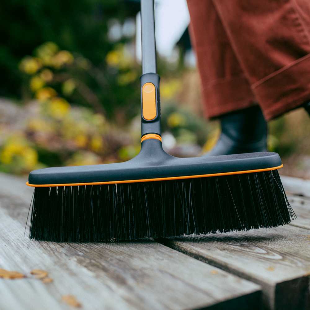 Широка щітка-головка з м’якою, міцною щетиною забезпечує швидке та ефективне прибирання гладких поверхонь, таких як тераси, настили та бетонні підлоги. Щітка ретельно видаляє бруд, не пошкоджуючи поверхню. Завдяки автоматичній системі фіксації OneClick, щітка-головка міцно та надійно кріпиться до сумісних ручок Fiskars Multisystem, забезпечуючи стабільну роботу. Система OneClick забезпечує змінні головки та ручки, що гарантує охайний сарай та максимальну гнучкість для різних садових завдань.