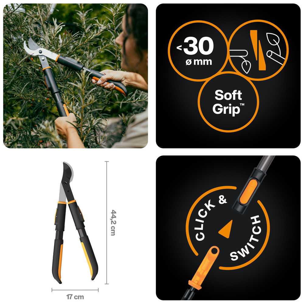 Як частина лінійки продуктів OneClick & Reach , ці сучкорізи пропонують легке та практичне рішення для обрізки високих гілок, зберігаючи при цьому контроль та точність.