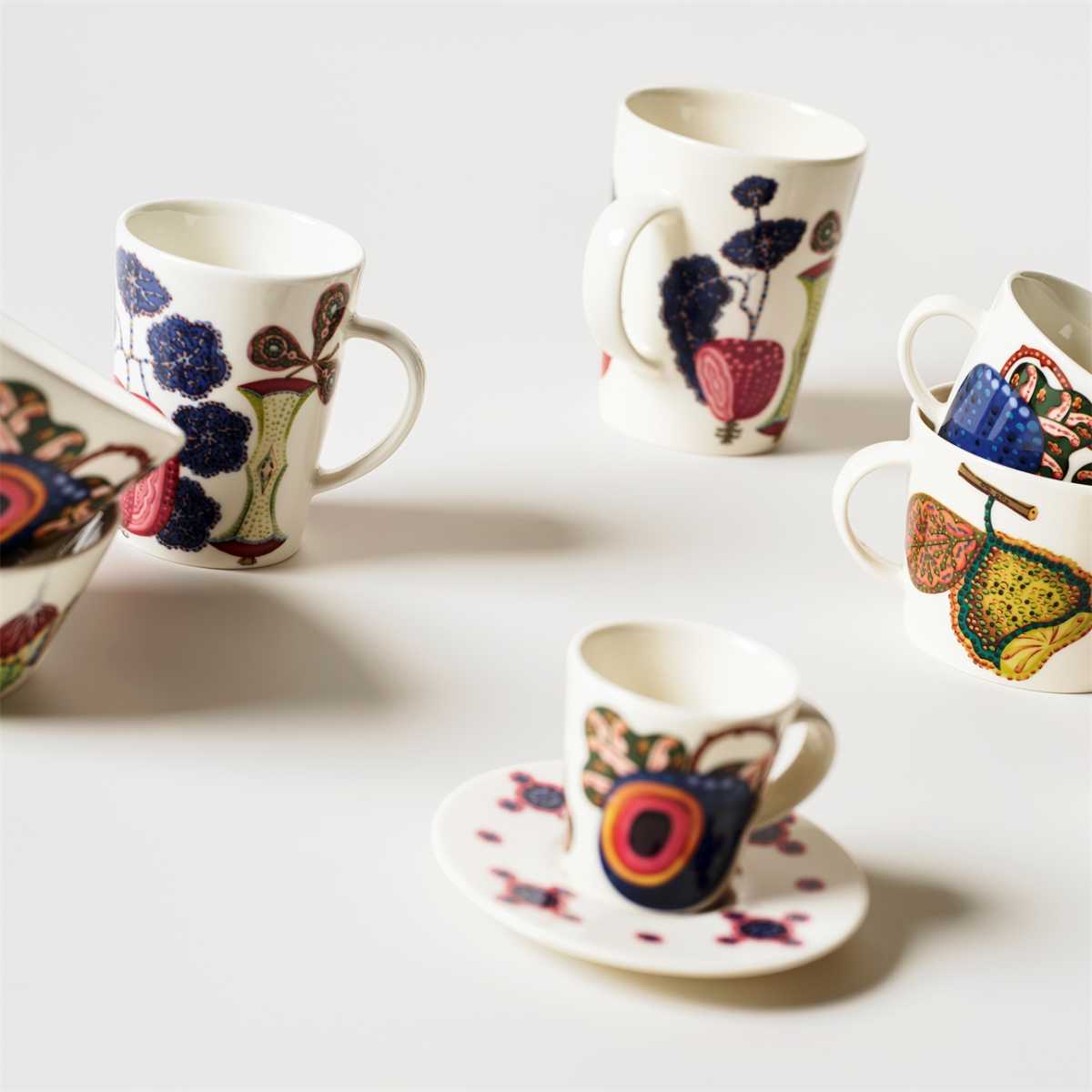 Колекція Taika Sato поєднує ілюстрації Клауса Хаапаніємі з функціональним дизайном Хейккі Орволи. Візерунок натхненний натюрмортами з фруктами та овочами в мистецтві та додає нотку грайливості сервіровці вашого столу.