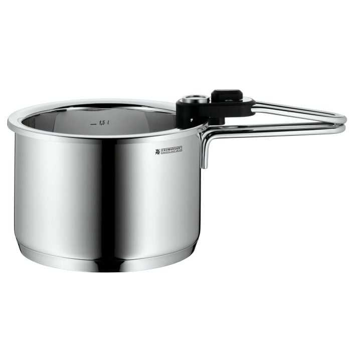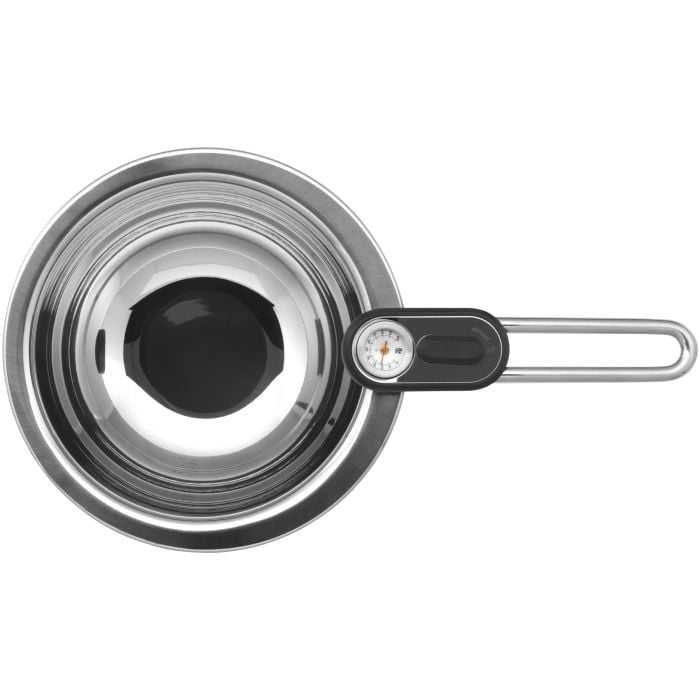 Кастрюля с термометром WMF 1,5 л (0792816040) для свободного разогрева молока, плавления шоколада, оттаивания, разогрева, приготовления соусов. Оснащена термометром, который позволяет точно контролировать температуру ингредиентов / жидкости.