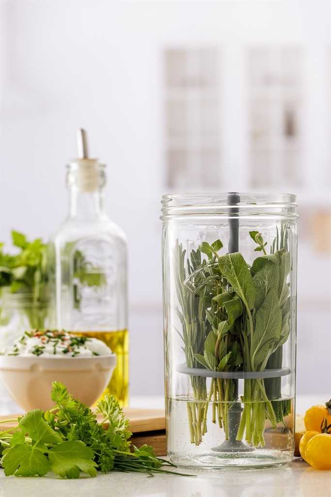 Набор для хранения свежих трав Kilner (0025.093) идеально подходит для хранения трав, таких как базилик, петрушка, мята, розмарин и кориандр, которые хранятся дольше, если хранить их в контейнере со стеблями в фильтрованной воде.