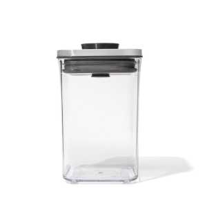 Контейнер Oxo Steel 1 L (OX3118400) предназначен для хранения сыпучих и сухих продуктов. На боковой стороне емкости есть линия, указывающая на максимальный уровень заполнения. Емкость объемом 1 л вмещает около 0,5 кг сахара. Крышка емкости изготовлена из нержавеющей стали и оснащена кнопочным механизмом. При нажатии кнопки на крышке получается герметичное уплотнение емкости; при повторном нажатии кнопки емкость открывается, и крышка также может быть снята. Благодаря этому решению достаточно одной руки, чтобы открывать и закрывать емкость. Внизу крышки есть место, куда можно прикрепить аксессуары, такие как мерные стаканы или мерные ложки. Емкости этой серии можно комбинировать по модульному принципу, благодаря чему хранение продуктов отлично организовано, а на полках все это выглядит очень эффектно.