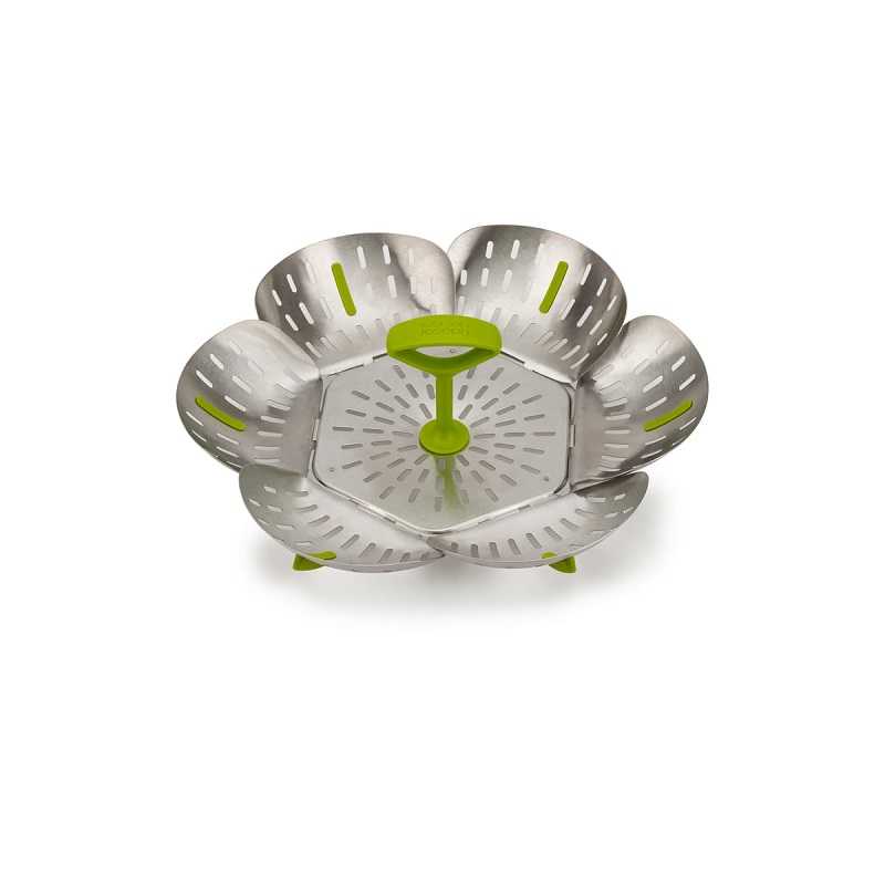 Корзина для варки на пару Joseph Joseph Bloom™ Steel (45033) с помощью которой еда может быть приготовлена аккуратно. Вставку просто кладут на кастрюлю, чтобы пар мог подниматься и готовить ингредиенты. Благодаря функции складывания вставка Bloom Steaming подходит для кастрюль разных размеров, при этом минимальный диаметр кастрюли должен составлять 18 см. Ручка в середине вставки позволяет легко ее снимать.