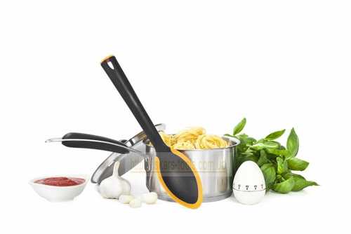 Большая ложка Fiskars Functional Form с силиконовым краем (1002982), плоская из специального укрепленного нейлона, края которой выполнены из жаропрочного силикона для комфортного использования.