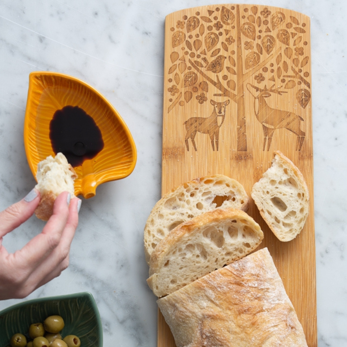 Сервировочная доска Mason Cash In The Forest (2002.219) изготовлена из натурального светло-коричневого бамбука и украшена узором выжженного дерева и оленя. Она будет отлично смотреться на кухонной столешнице или обеденном столе, идеально подходя для уникальной подачи сыров, бутербродов, фруктов, тортов и т.д. Доску можно хранить в ящике или выставлять на улицу, чтобы украсить интерьер вашей кухни, когда она не используется. Чтобы поддерживать ее чистоту, протирайте ее поверхность влажной тряпкой и тщательно высушивайте.