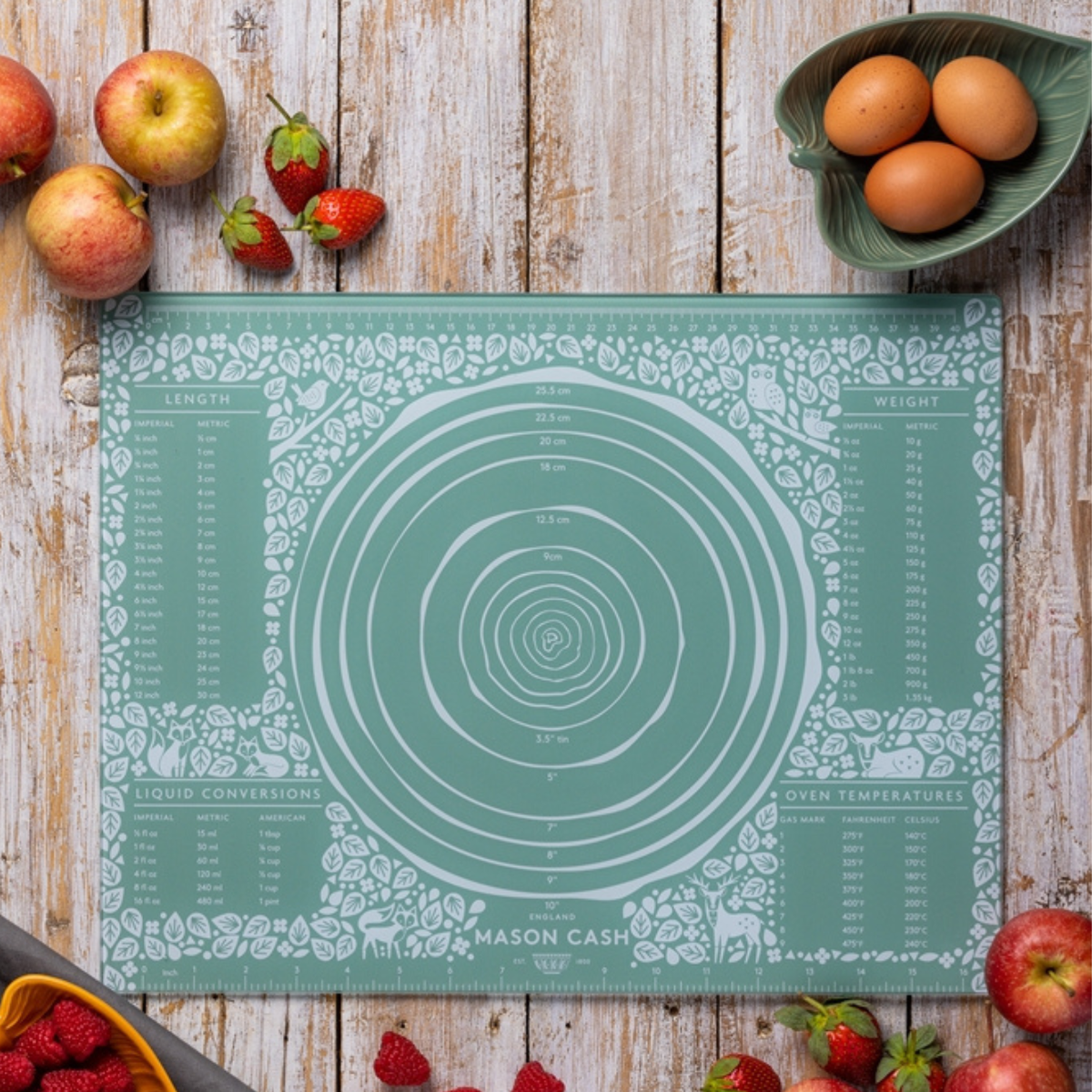 Стеклянная доска для выпечки Mason Cash In The Forest (2002.237) изготовлена из закаленного зеленого стекла, стойкого к пятнам и термостойкого до 180°C (ее можно использовать в качестве подставки). Она также стойка к запахам. Она идеально подходит для таких вещей, как раскачка теста. Ее поверхность имеет шкалу с точностью до 100% и практическое преобразование для измерений, емкости, веса и температуры, что облегчает приготовление тортов по международным рецептам. Нескользящие ножки стабилизируют доску на столешнице, предотвращая ее неконтролируемое скольжение.
