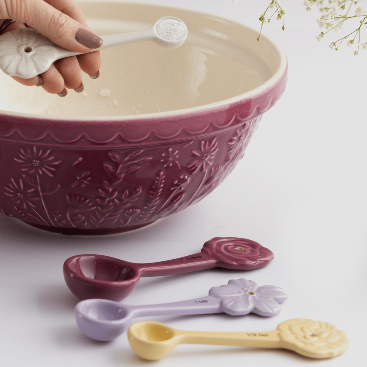 Набор мерных ложек Mason Cash In The Meadow (2002.172) состоит из четырех маленьких мерных ложек в форме ложки, позволяющих легко отмерить разные ингредиенты в количестве 1 столовой ложки, 1 чайной ложки, 0,5 чайной ложки и 0,25 чайной ложки. Они изготовлены из прочной керамики и доступны в разных цветах: кремовом, фиолетовом, розовом и желтом. Кроме того, каждая ложка украшена разным цветком, что придает им уникальность и позволяет легко идентифицировать.