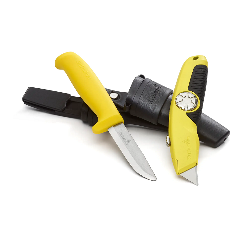 Набор ножей Hultafors Double holster SK & USRA (381050) включает два ножа; нож ремесленника SK и нож USRA. Защитный нож SK разработан с тупым кончиком, разработанный и адаптированный для повышения безопасности и минимизации травм. Это идеальный выбор для мастера, который ценит безопасность. Нож USRA - это нож с выдвижным лезвием для предотвращения пробивных ран и сужающаяся кончиком для отличного сцепления при резке гипсокартонов, ковров и обоев. Двойная кобура всегда позволяет вам иметь доступ к двум ножам, которые вы используете больше всего, и ваша работа выполняется эффективно. Двойная кобура изготовлена из ударопрочного пластика PP, соединенного заклепками и эластичной петлей.