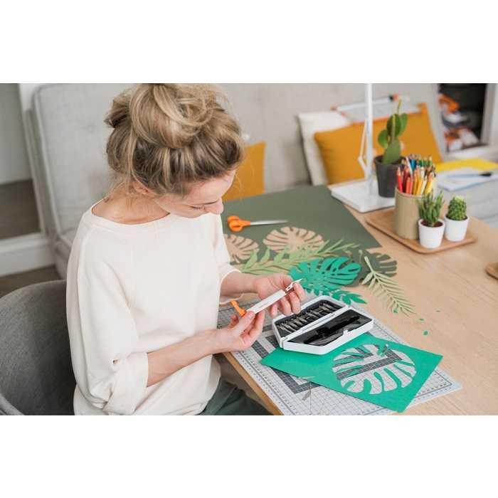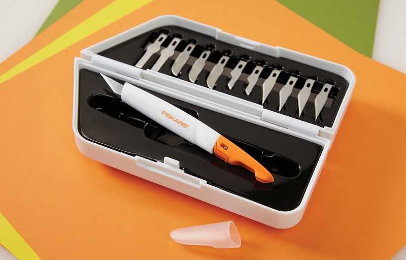 Набор художественных ножей и лезвий Fiskars Premium Precision (1024384) отличный выбор для резки бумаги, картона, тонкого пластика, фотографий, холста и т. д. Состоит из ножа Premium Fine Art Knife и 12 лезвий 4 различных типов: 3 стандартных изогнутых ножа №10, 5 стандартных ножей №11, 2 подрезных ножа №16 и 2 стандартных ножа-долото №17. Нож позволяет легко менять лезвия за считанные секунды благодаря переключаемому замку. Художественный нож удобно держать благодаря эргономичной рукоятке Softgrip. В набор входят четыре стиля различных лезвий, что позволяет вам всегда выбирать правильное лезвие для ваших материалов и проектов. Набор поставляется в пластиковом кейсе для безопасной и удобной транспортировки и хранения.