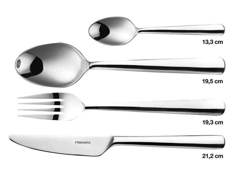 Набор столовых приборов Fiskars Functional Form Mirror 24 шт (1071623) из 24 предметов серии Fiskars Functional Form элегантен, функционален и современен. Набор состоит из четырех наборов по 6 предметов, каждый из которых состоит из столового ножа, вилки, столовой ложки и чайной ложки. И по функциональности, и по дизайну все детали прекрасно дополняют друг друга. Изгибы ложек отражаются в закругленных формах ножа и вилки, длинные узкие ножки придают гармоничное единство и современный штрих. Простой дизайн, подчеркнутый его глянцевой поверхностью, делает набор столовых приборов стильным спутником в повседневной жизни и в особых случаях.
