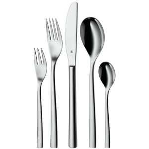 Набор столовых приборов WMF Palermo 30 шт. (1177916040) Рассчитан на 6 персон, в подарочной коробке. Столовые приборы изготовлены из полированной нержавеющей стали 18/10 Cromargan protect®, устойчивы к повреждениям и царапинам, кислотам от овощей и фруктов, не впитывают запахи.
