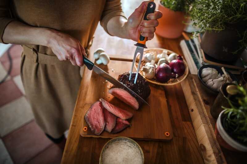 Нож для мяса Fiskars Functional Form™ 21 cm (1057539) большой нож с прямым лезвием идеально подходят для порционирования и нарезки мяса. Его использование безопасно за счет специальной выемки - это увеличивает безопасность пальцев. Благодаря рукоятке Softouch ™ нож не выскользнет из рук. Он не вызывает коррозии, его можно мыть в посудомоечной машине, что делает его надежным помощником в работе на кухне, который останется с вами на долгие годы.