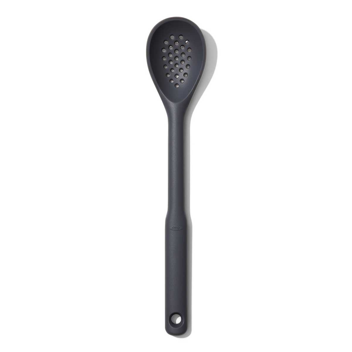 Силиконовая ложка OXO Good Grips (11281600) – незаменимый инструмент на любой кухне. Изготовленная из высококачественного силикона, она не только гибкая, но и термостойкая, что делает ее безопасной для использования во время приготовления пищи или жарки. Кроме того, силиконовая поверхность не царапает посуду, что делает ее идеальной для использования на разных поверхностях.