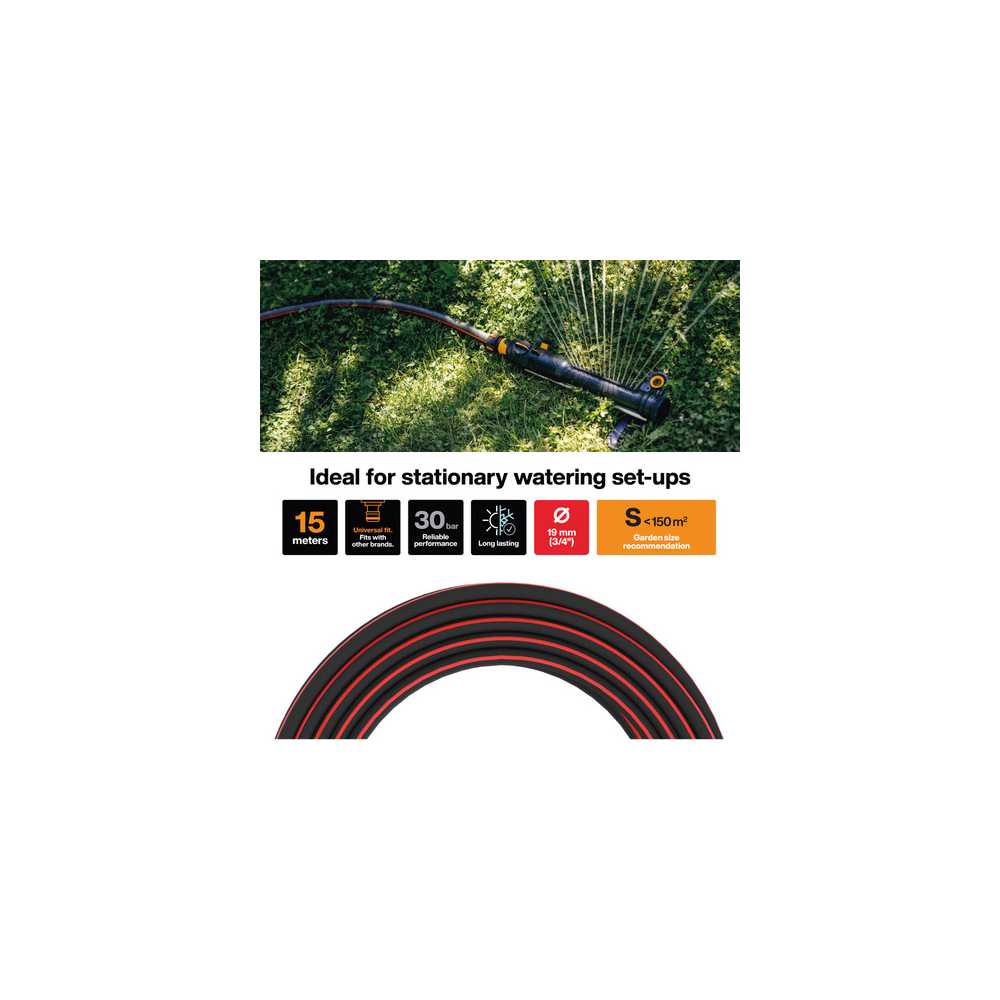 Садовий шланг Fiskars Solid™ 19 mm (3/4") 15 м (1076061) з максимальною ефективністью дощувальних систем та інших зрошувальних пристроїв завдяки підтримці оптимального тиску та потоку води.
