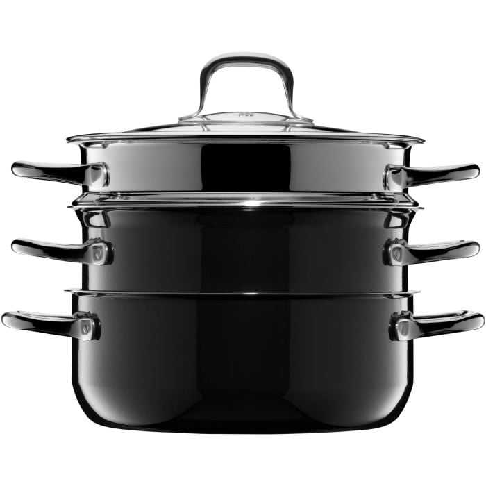 Набор посуды WMF Fusiontec Compact Black 3 шт. (0515615290) комплект из: 2 кастрюли (диаметром 22 см), вставка для приготовления на пару и крышка.