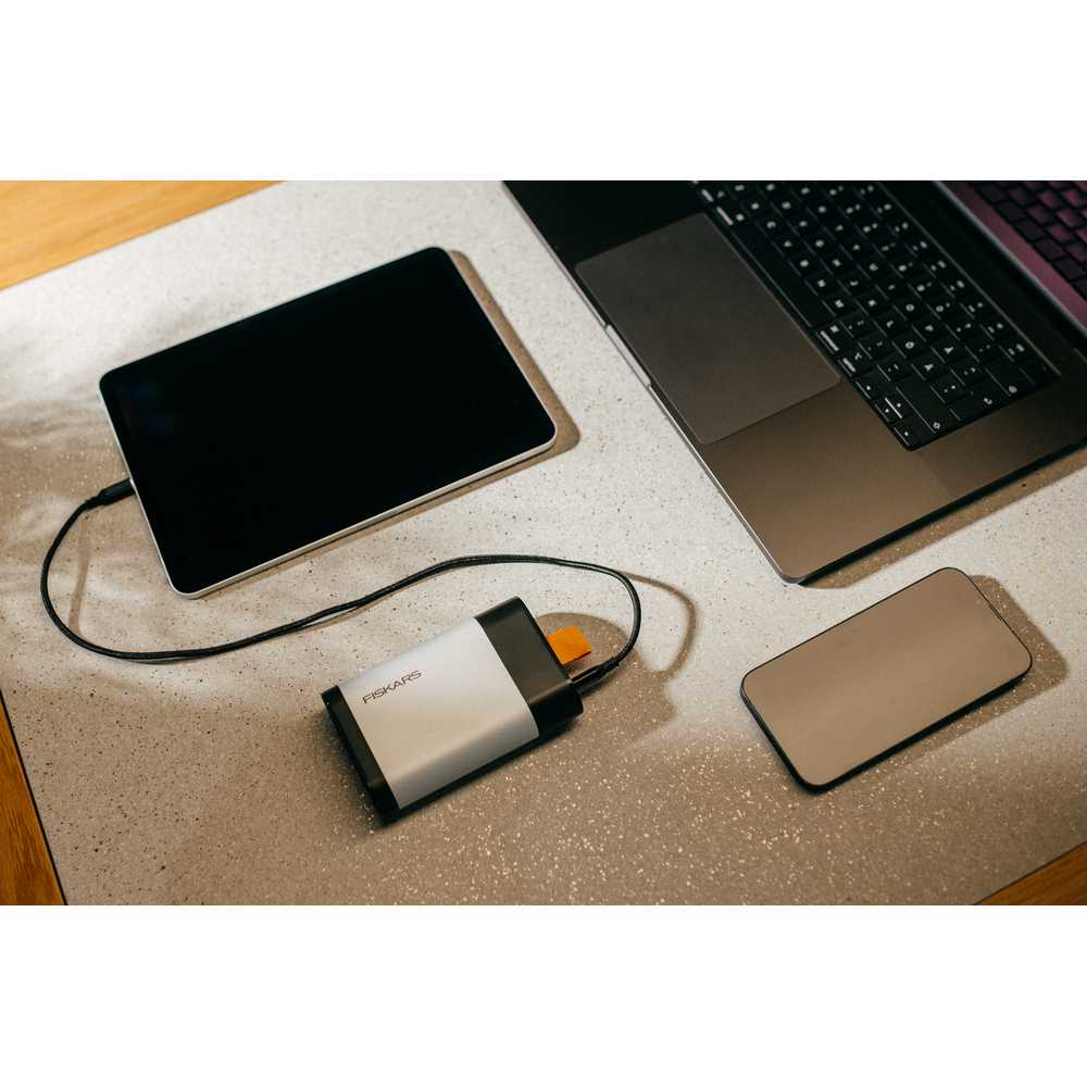 Аккумулятор Fiskars 12V-4Ah (1082341) легко питает все электроинструменты Fiskars. Целодневная работа, которая легко помещается в вашем кармане. Зарядка через USB-C всего за 2,5 часа – зарядная станция не требуется. Используется в качестве внешнего аккумулятора для зарядки телефонов, планшетов и прочего. Элегантный портативный дизайн делает его удобным для переноски и всегда готов к использованию.