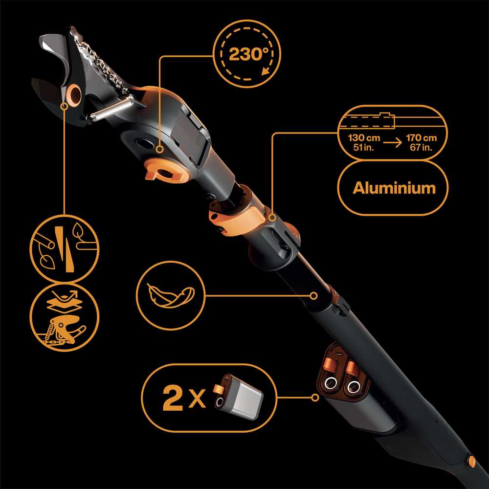 Телескопический аккумуляторный сучкорез Fiskars eLopper Bypass без аккумулятора (1082299) срезает свежие ветки диаметром до 32 мм — до 1500 срезов на одном заряде. Выдвижной вал 130-170 см обеспечивает общий радиус действия до 3,4 м. Регулируемая головка на 230° и максимальный контроль. Курок для захвата веток легко приподнимает и удаляет мусор. Фиксатор курицы, автоматическое выключение и шнурок на запястье обеспечивают безопасную работу. Питание от 2 аккумуляторов 12V 4A (не входит в комплект). Зарядка через USB-C, может использоваться как внешний аккумулятор.