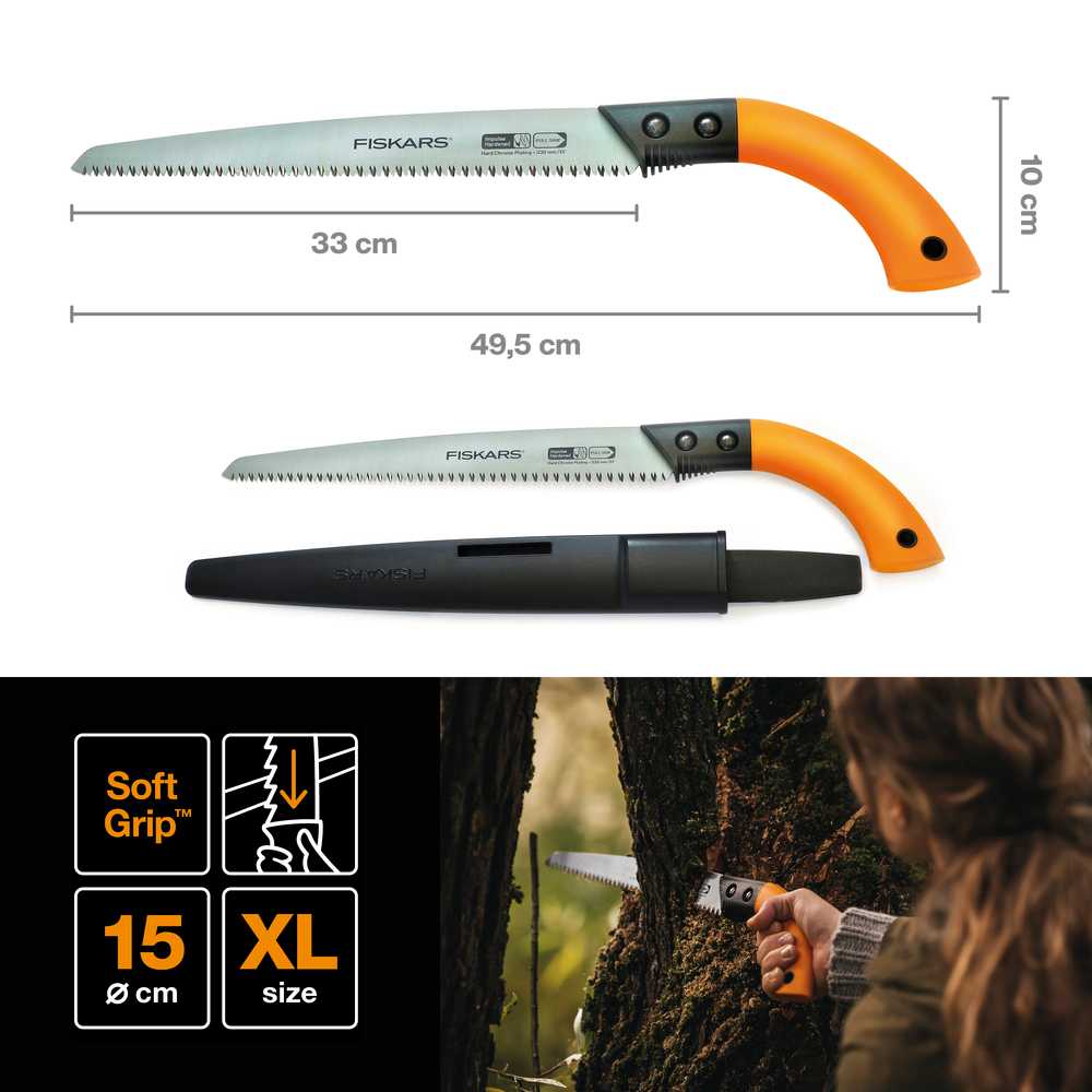 Пила с фиксированным лезвием Fiskars SW84 (1001620) - лучшая пила по дереву для резки до 150 мм благодаря высокоэффективному профилю зуба, что позволяет быстро и точно пилить. Это очень хорошая пилка и удобство в руке гарантируется благодаря эргономичной изогнутой ручке SoftGrip™. Как и другие пилы в этой категории, фиксированные лезвия режут по ходу тяги.
