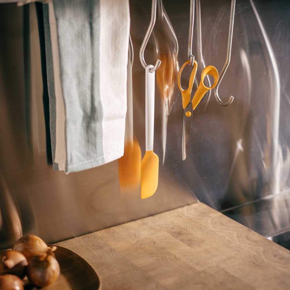 Скребок для теста Fiskars Functional Form™ (1023615) практичный помощник в повседневных кухонных задачах при жарке, выпечке или готовке. Силиконовый шпатель позволяет безопасно манипулировать блюдами, приготовленными в посуде, покрытой легко царапающимися антипригарными слоями. Выполненная из силикона рабочая часть шпателя имеет асимметричную форму, что обеспечивает доступ ко всем труднодоступным частям кастрюль и сковородок.