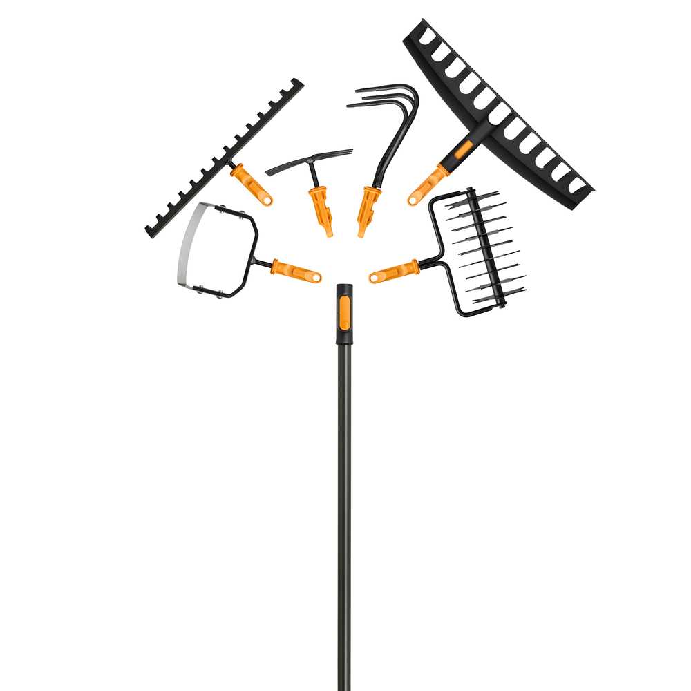 Универсальные грабли Fiskars OneClick (1080674) - универсальный садовый инструмент для сгребания, уборки и подготовки газонов и клумб. Эти грабли являются частью умной системы Fiskars OneClick & Clean и предлагают компактное решение для ежедневного ухода за садом. Благодаря хорошо продуманному углу зубцов и модульной конструкции, вы можете работать комфортно, эффективно и аккуратно.