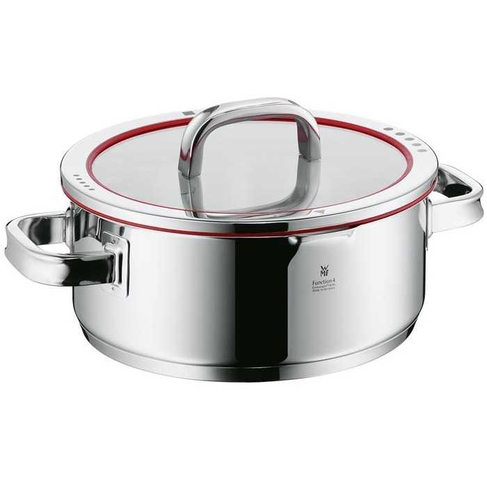 Посуд Cromargan® Function 4 з нержавіючої сталі – це визначення гарного дизайну, функціональності, естетики та інновацій, відзначене у 2009 році премією IF Design Awards. Ця унікальна серія – результат 160-річного досвіду бренду WMF у створенні високоякісного кухонного посуду. У нього входять як окремі каструлі та сковорідки різної ємності, так і готові набори кухонного начиння.