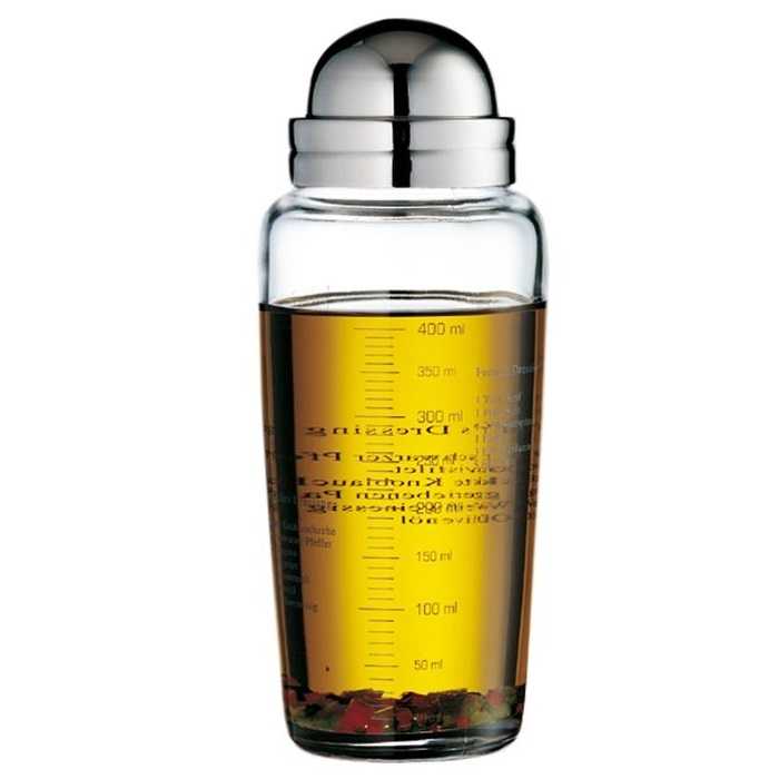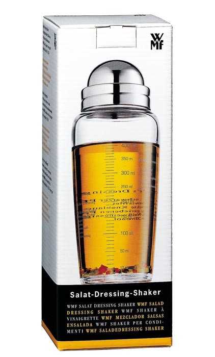 Шейкер для соусів WMF (0953762040) - ідеальний помічник на кожній кухні. Завдяки йому готувати вершкові салатні соуси, маринади та заправки стане набагато простіше. Просто покладіть необхідні інгредієнти, закрийте кришку і струшуйте до отримання потрібного результату. Елегантний та привабливий зовнішній вигляд шейкера дозволяє подавати заправку прямо до салату. Герметична конструкція запобігає випадковим протіканням, а значить, не викличе жодних проблем під час роботи. Виріб виготовлений зі скла та нержавіючої сталі Cromargan®, що забезпечує виняткову довговічність шейкера. Крім того, в контейнері-шейкері є мірна склянка, яка полегшить точне додавання інгредієнтів.