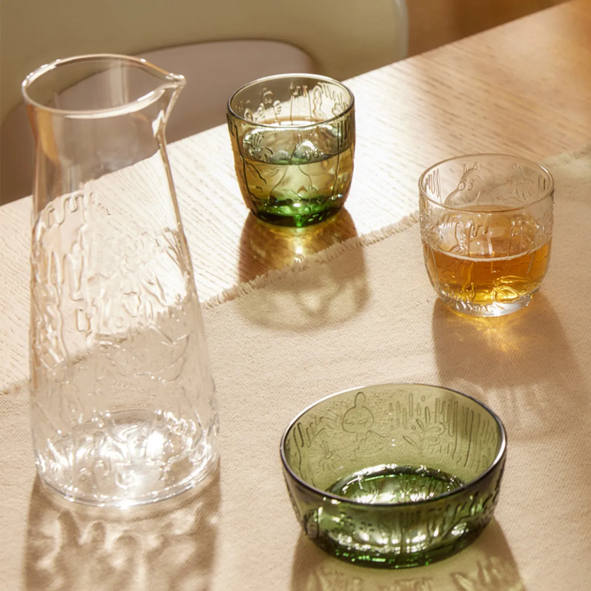 Глечик Arabia Moomin 1 L (1077460) з приголомшливої колекції рельєфного скляного посуду, натхненного романом Туве Янссон «Фін Сім'я Мумі-тролів». Кожен виріб прикрашений красивими текстурами, які передають магію містичного лісу, доки Мумі-тролі грають у хованки.