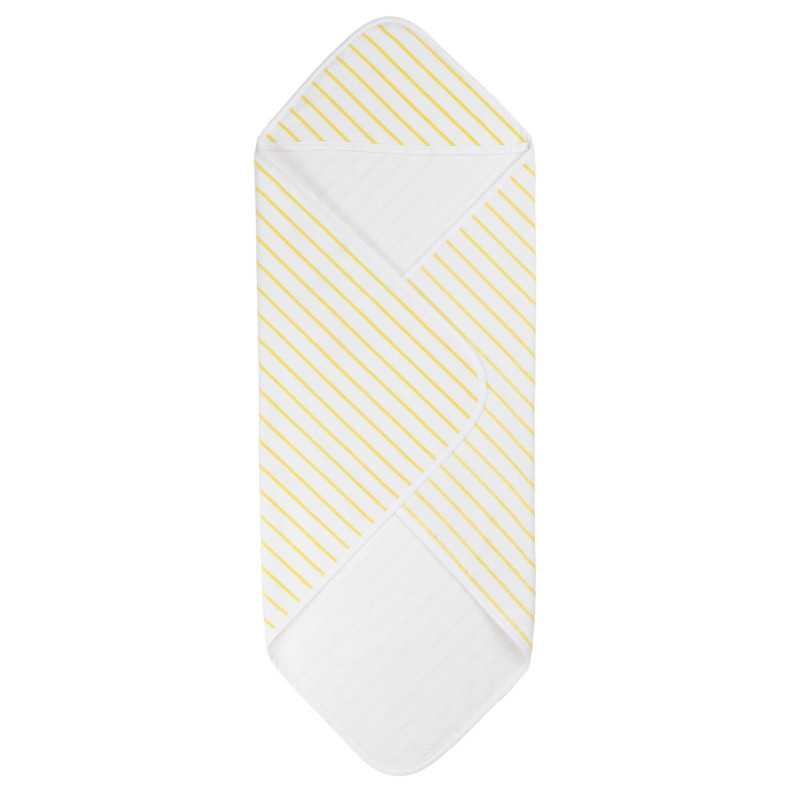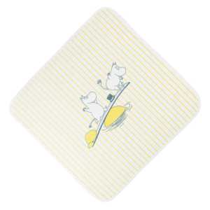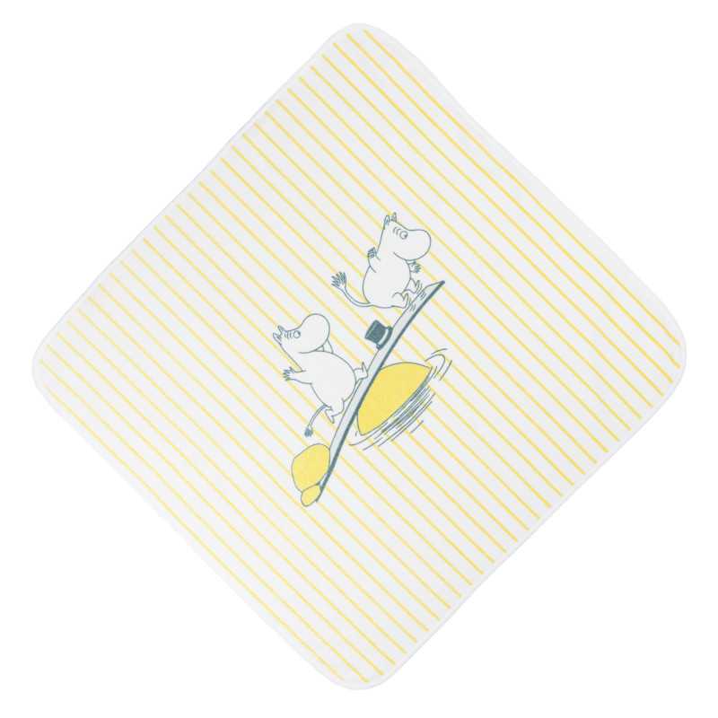 Мумі-тато та Мумі-троль знайшли ідеальне місце для купання та збираються стрибнути в море, щоб освіжитися. Чудово загорнутися в смугастий рушник з капюшоном після купання. М'який органічний бавовняний велюр чудово відчувається на дотик.