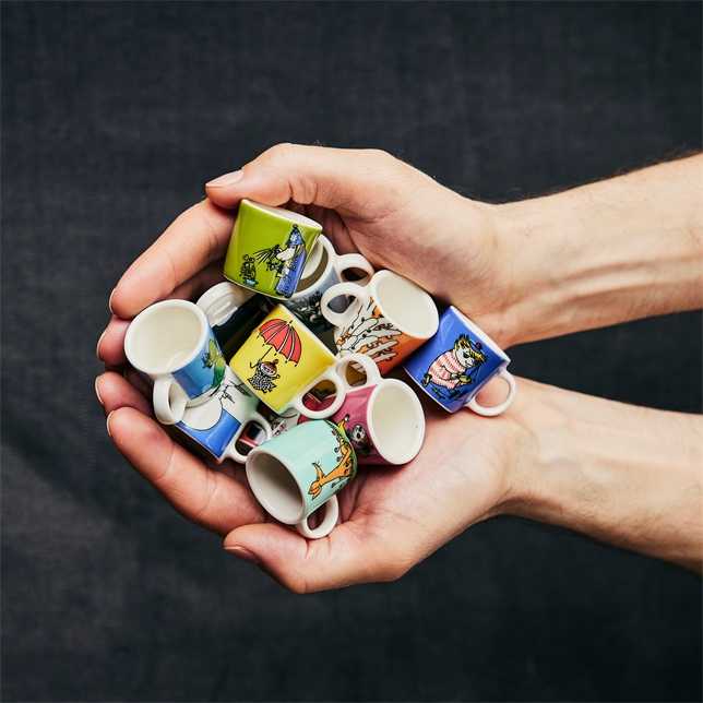 Набір з 6 міні-кухлів Arabia Moomin Classic 3 (1059959) в якому ви зустрінете знайомих жителів Долини Мумі-тролів. 12-мілілітрові кружки являють собою мініатюрні копії колекції Moomin Classics і знаходять своє застосування як сервірування столу і предметів колекціонування, так і як прикрас для різдвяної ялинки. У цьому третьому випуску міні-кухлів представлені Mymble, Too-ticky, Inspector, Little My, Sniff та Hattifatteners, як вони були зображені на своїх повнорозмірних аналогах у 2006–2009 роках.