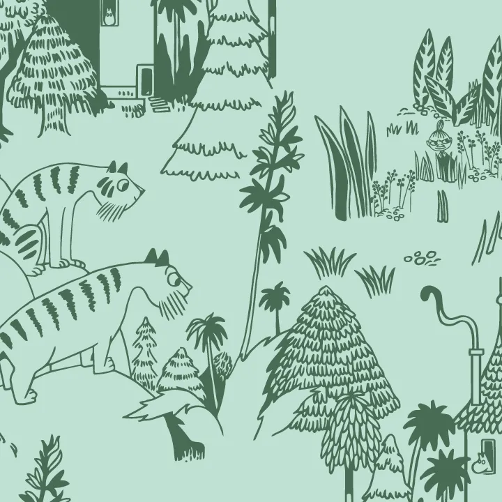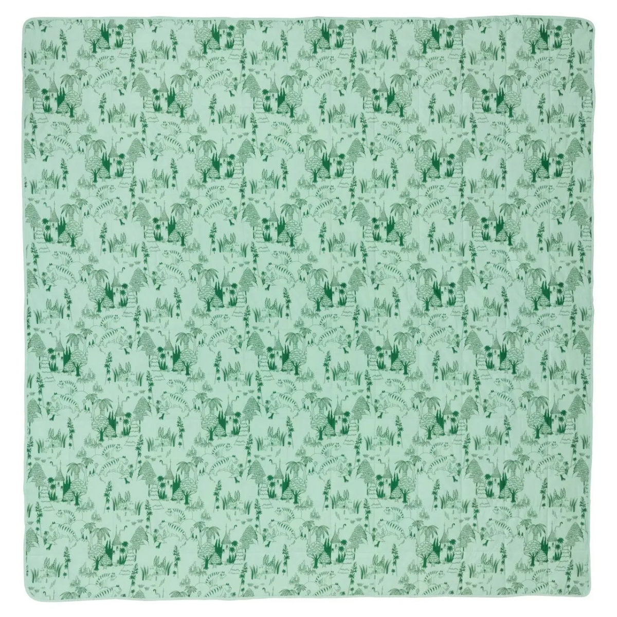 Покривало прикрашене принтом із зображенням культових Мумі-тролів. Приємний відтінок зеленого оживляє ліжко та додає нотку кольору до композиції. Покривало накриває постільну білизну, створюючи естетичний ефект, а також захищає ковдру та подушки від бруду та пилу.