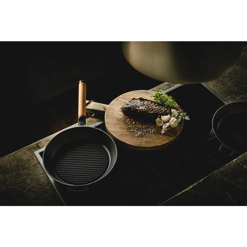 Чавунна сковорода-гриль Fiskars Norden 26 cm (1026570) виготовлена з інноваційного поєднання високоякісних матеріалів, що витримують дуже високі температури і мають чудові природні антипригарні властивості. Ідеально підходить для гасіння страв, які збережуть весь свій насичений смак. Чавунна сковорода преміум-класу натхненна природою та скандинавськими традиціями. Унікальна мінеральна обробка Thermium™ на емальованій чавунній поверхні надає сковороді чудових антипригарних властивостей навіть при дуже високих температурах. Знімна дерев'яна ручка із фінської берези.