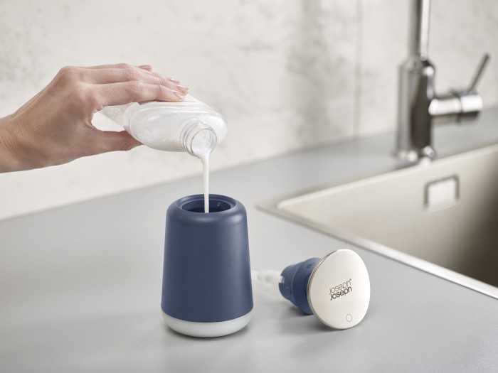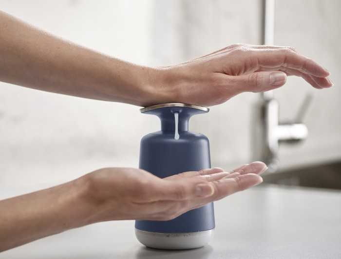 Диспансер для мыла Joseph Joseph Presto ™ Sky (85184) форма которого позволяет управлять им даже запястьем или локтем. Дозатор мыла Presto от Joseph Joseph оснащен большим, простым в использовании насосом, которым можно управлять не только рукой, но и предплечьем, что очень гигиенично. Прозрачное окошко позволяет просматривать уровень заполнения дозатора и быстро его заполнять.
