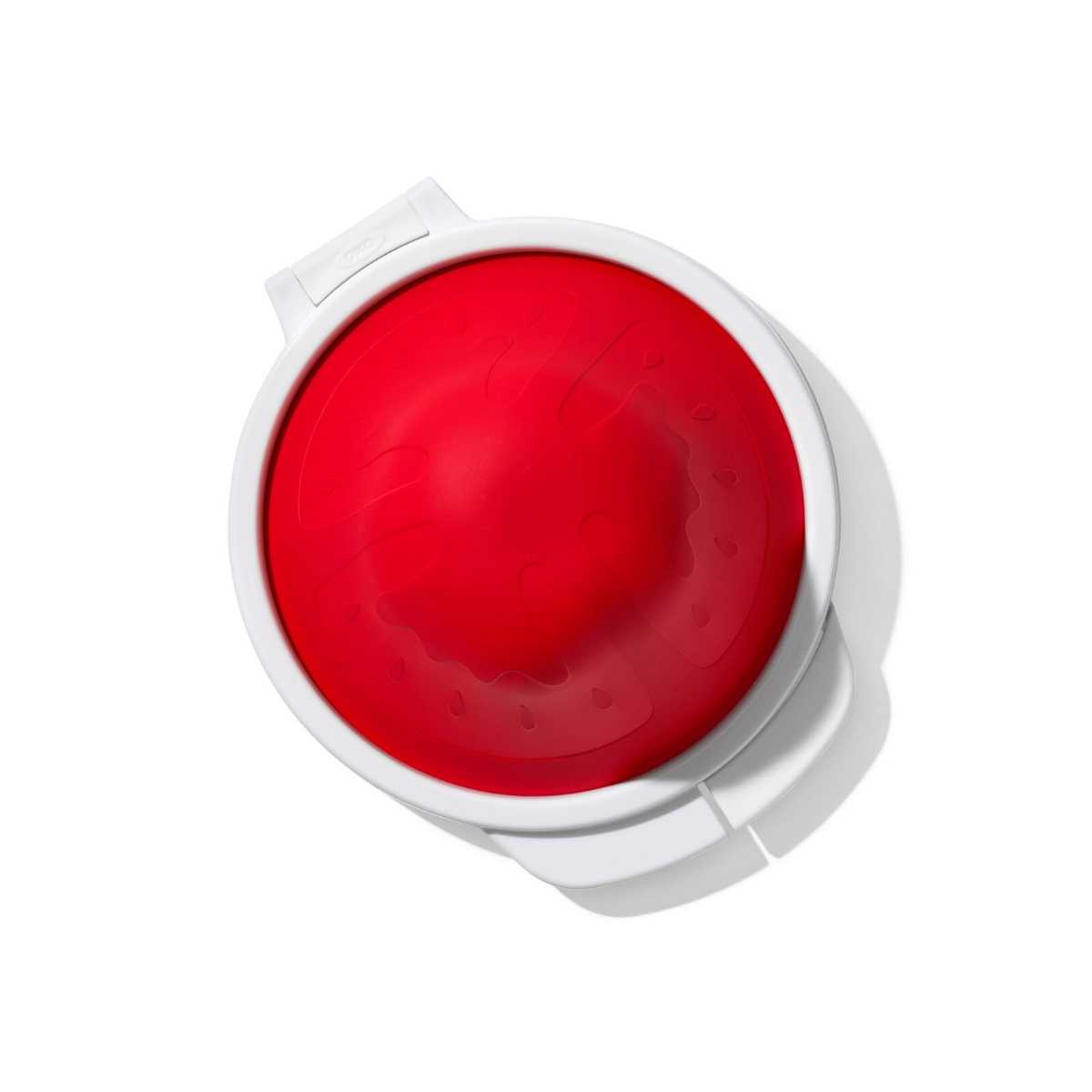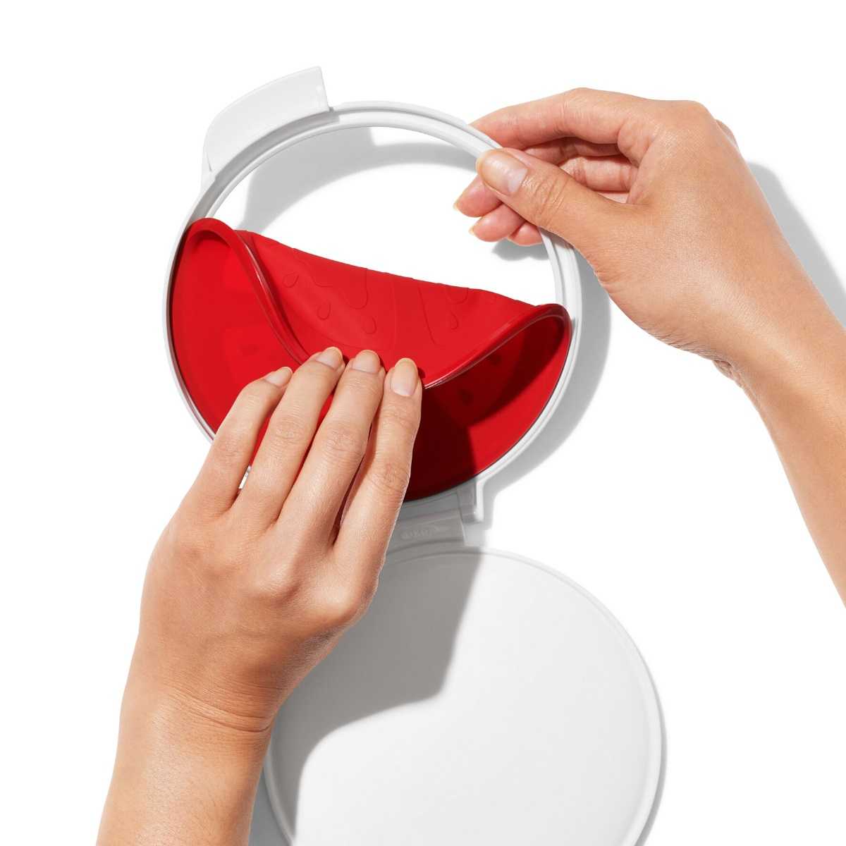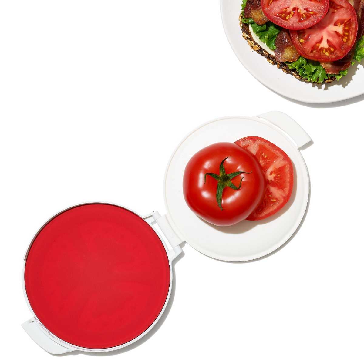 Емкость для хранения OXO для помидоров (11250000MLNYK) - самый простой способ хранить остатки помидоров в холодильнике. Благодаря гибкой мембране, натянутой на пластиковую основу, оболочка подходит для половинок помидоров меньшего и среднего размера. Плотное закрытие предотвращает попадание воздуха внутрь корпуса, поэтому продукты, хранящиеся в холодильнике, не впитывают запахи. Отсутствие доступа воздуха также влияет на более длительную свежесть овощей, замедляя процесс размножения бактерий и замедляя образование плесени. Интенсивный красный цвет оболочки делает ее хорошо видимой в холодильнике, а сам цвет относится к цвету помидора. Силиконовую мембрану можно снять для тщательной очистки. Сборка корпуса интуитивно проста: просто вставьте выпуклый силиконовый край в пластиковую основу. На внешней стороне контейнера должен быть виден выпуклый узор.