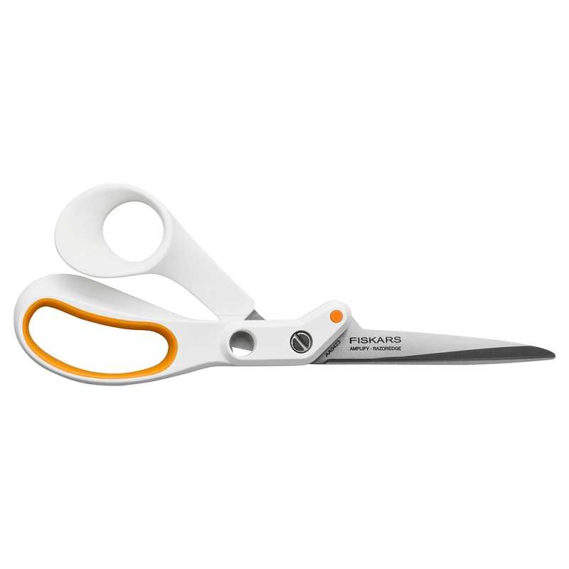 Ножиці для тканини Fiskars Amplify™ 21 см (1070081) покращують ваші навички завдяки інноваційним технологіям, складним функціям та покращеній ергономіці для точних та чистих розрізів багатошарових та важких тканин. Звичайні леза можуть розходитися при розрізанні кількох шарів чи важких тканин, у результаті тканина згинається над лезами, що зумовлює нестабільному чи невдалому розрізу. Революційний приводний штифт Amplify зближує два леза, завдяки чому ножиці ідеально та точно прорізають усі шари тканини. Надгострі леза RazorEdge™ з високоякісної нержавіючої сталі ріжуть до кінчиків, що дуже важливо при роботі з тканиною. Великі ручки ергономічної форми природно лежать у руці, а ручка Softgrip забезпечує більший комфорт і контроль над ножицями.
