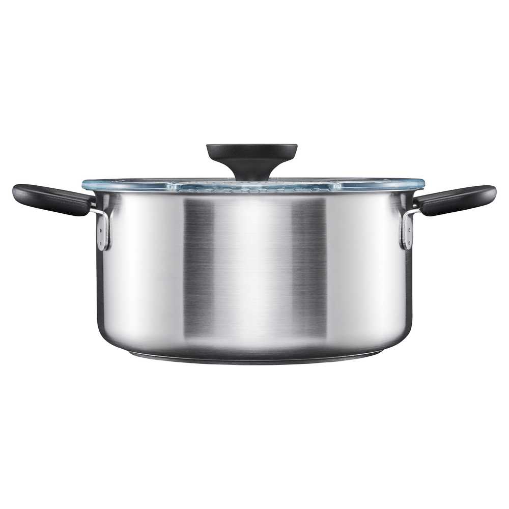 Каструля з кришкою Fiskars Functional Form™ 3 л (1072316) ідеально підходить для приготування багатьох щоденних страв, особливо супів та рагу, а також рису та інших круп. Каструля об'ємом 3 л на 90 % виготовлена із міцної переробленої нержавіючої сталі та може використовуватися на всіх плитах, включаючи індукційні. Каструля оснащена внутрішнім індикатором рідини та скляною кришкою. Продумана конструкція, кришка з контролем кипіння та вбудоване сито, що дозволяє більш точно порціонувати. Кришка має простий дизайн ручки та функцію контролю кипіння, а плоска форма робить її дуже зручною для зберігання. Каструлю легко мити, можна мити в посудомийній машині, а також використовувати в духовці за температури до 150°C.