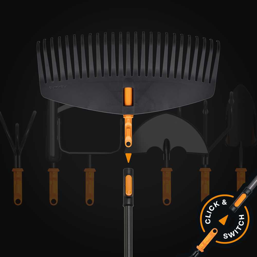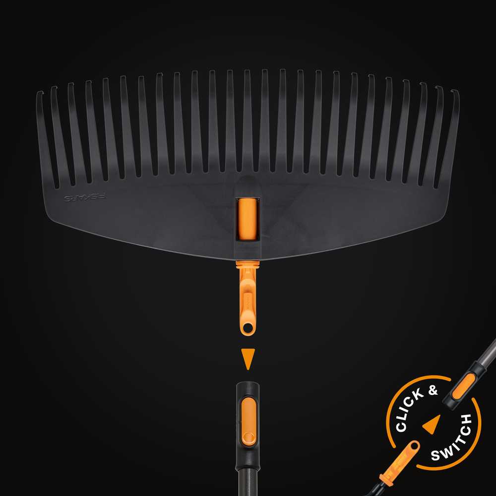 М’які та дуже гнучкі зубці забезпечують оптимальний контакт із землею, дозволяючи ефективно збирати листя та скошену траву, не пошкоджуючи газон. Граблі для листя є частиною модульної системи OneClick та автоматично й надійно кріпляться до сумісних ручок Fiskars. Це забезпечує стабільну та безпечну роботу без нещільних з’єднань. Завдяки системі змінних головок ви можете використовувати кілька насадок з однією ручкою, що економить місце для зберігання та забезпечує порядок у ваших садових інструментах.
