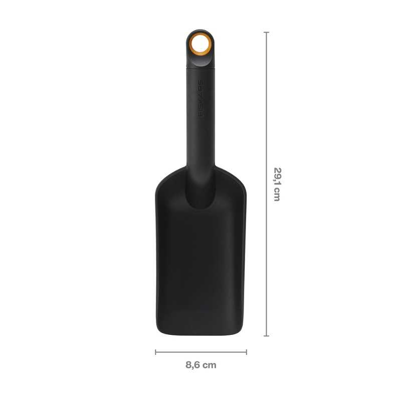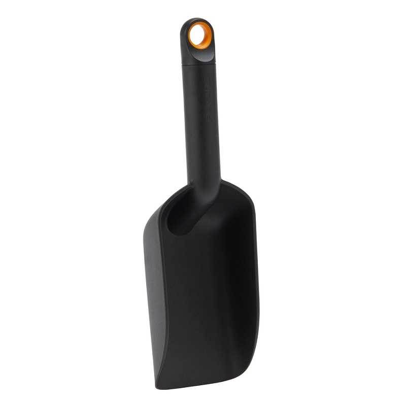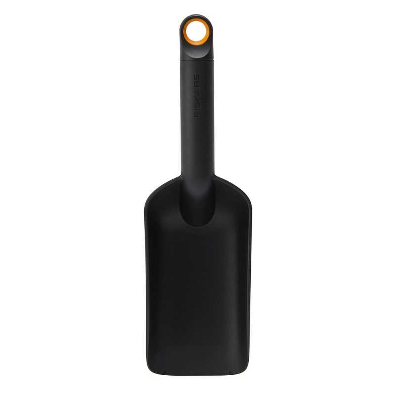 Лопатка для ґрунту Fiskars PlantCare (1071303) ідеально підходить для перекладання ґрунту з мішка в горщик. Дно лопаточки сплюснуте, що дозволяє ставити її на стіл без ризику перекидання. Високі бічні краї запобігають висипанню ґрунту. Отвір для підвішування полегшує зберігання. Виготовлена з міцної та легкої смоли, що містить 20% переробленого пластику.
