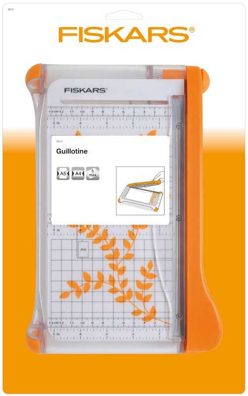 Шабельний різак для паперу Fiskars А5 (1003922) ідеально підходить для обрізання карт, фотографій, листівок та запрошень. Одночасно можна розрізати до 5 аркушів паперу густиною 80 г/кв.м. Метрична та дюймова розмітка захищена від стирання. Прозорий тримач паперу захищає її від відбитків пальців. Прогумовані ніжки надійно утримують різак.