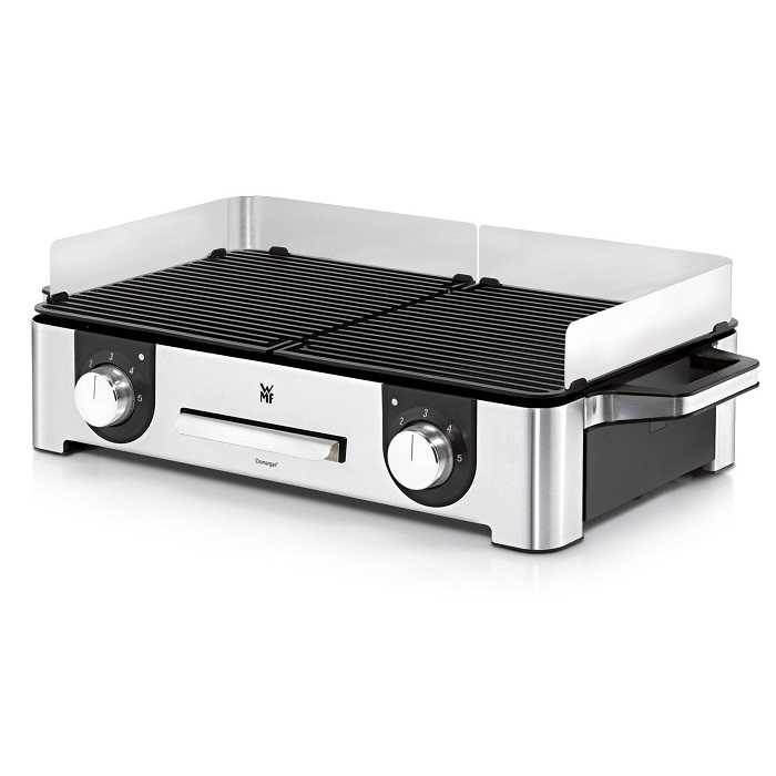 Великий електрогриль WMF Lono Master (415280011) з великим майданчиком для барбекю призначений для використання як у приміщенні, так і на відкритому повітрі. Він оснащений знімними бризковиками та лотком для крихт. Завдяки двом окремим ґратам для гриля, температура яких регулюється індивідуально та безступінчасто, вам більше не потрібно турбуватися про те, що буде першим на вашому грилі!