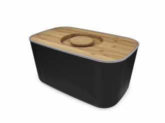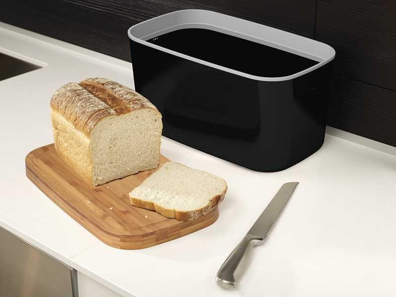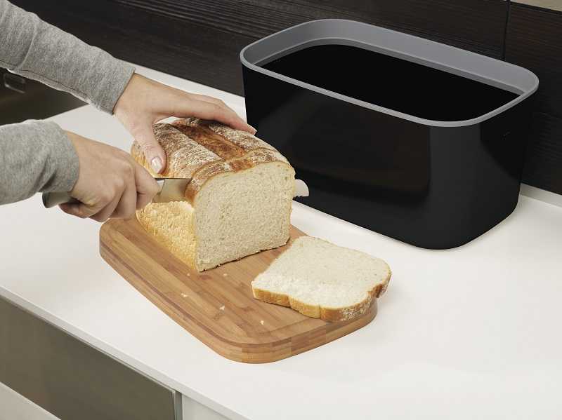 Хлебница Joseph Joseph Steel bread bin - Black (80045) с прочным стальным корпусом и нескользящими ножками, крышка - бамбуковая доска с канавками 2 в 1: крышка и разделочная доска - просто переверните.