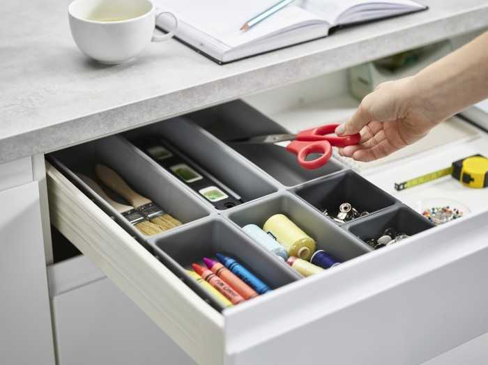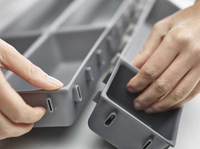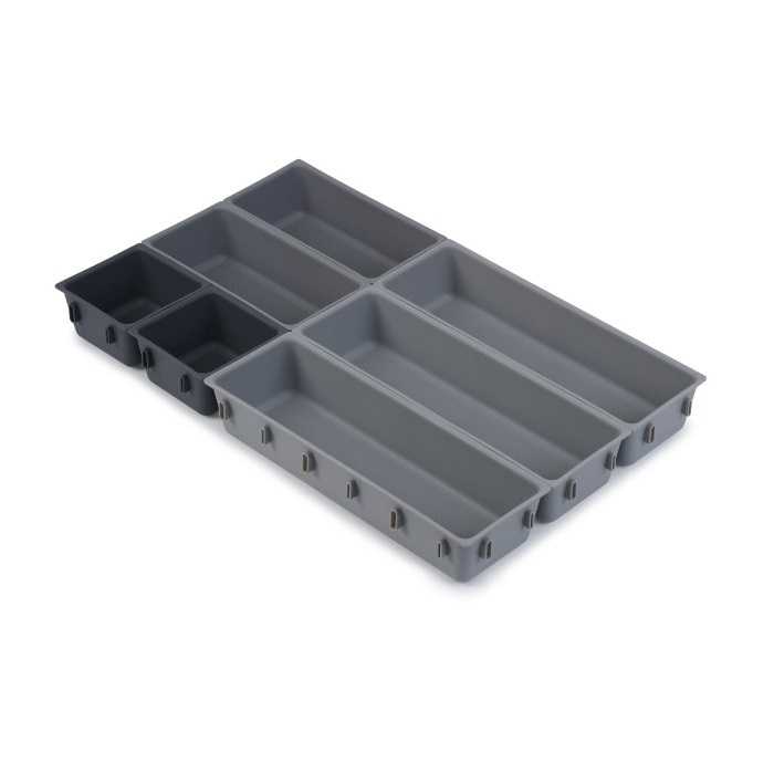 Модульний органайзер Joseph Joseph Blox™ (85199) із 7 елементів різного розміру, які можна вільно роз'єднувати та комбінувати між собою, що дозволить адаптувати їх під простір у ящику. В комплект входять нековзні ніжки, що самоклеяться, які запобігають надмірному зміщенню органайзера при висуванні і закритті ящика. Виріб гігієнічний і легко миється - досить протерти вологою ганчіркою. Його можна використовувати окремо або у поєднанні з іншим органайзером Joseph Joseph Blox.