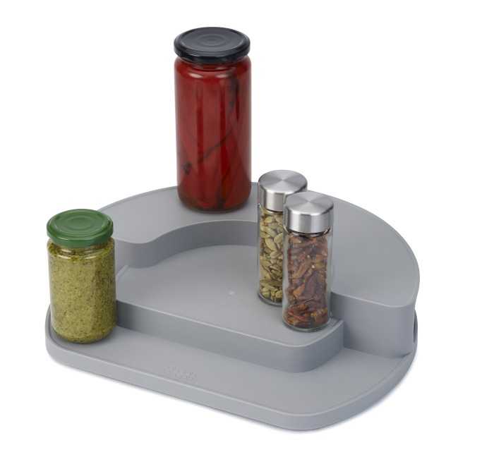 Обертовий органайзер Joseph Joseph CupboardStore™ (85195) дозволить вам зручно зберігати, наприклад, банки з варенням усередині кухонних шафок. Він також добре виглядатиме на кухонній стійці, цікаво відображаючи розміщені на ній предмети. Органайзер має три обертових на основі рівня, завдяки чому продукти, що зберігаються на ньому, добре видно і легко доступні, а також додаткове місце для зберігання дрібних незакріплених предметів усередині, наприклад, бульйонних кубиків. Його поверхня текстурована, а краї піднесені, що запобігає зісковзуванню банок і т. д., забезпечуючи велику безпеку. Він призначений для шаф шириною та глибиною понад 33 см, і щоб його почистити, його слід протирати вологою ганчіркою.