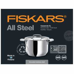 Каструля Fiskars All Steel 3 L (1023766) із нержавіючої сталі для приготування їжі. Ручки з нержавіючої сталі та шкала виміру всередині. Ефективна тришарова основа працює на всіх панелях.