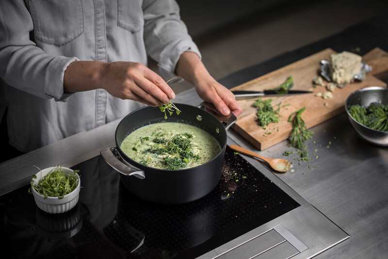 Посуда премиум-класса Rotisser изготовлена из легкого алюминия, который очень хорошо распределяет тепло, благодаря чему пища нагревается равномерно по всей поверхности. Исключительная поверхность Hardtec Superior облегчает приготовление пищи и уход. Дно посуды оптимизировано для нагрева на 50% быстрее, что позволяет экономить до 30% энергии.