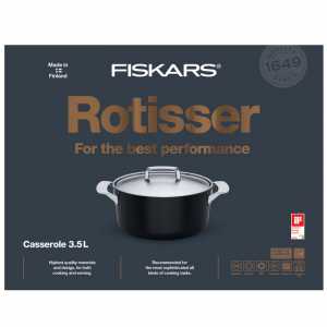 Кастрюля Fiskars Rotisser 3,5 L (1023755) алюминиевая кастрюля, покрытая инновационным слоем Hardtec Superior с крышкой из нержавеющей стали. Классический дизайн и материалы высочайшего качества. Идеально подходит для всех типов варочных панелей. Использовать в духовке при температуре до 240 °C.
